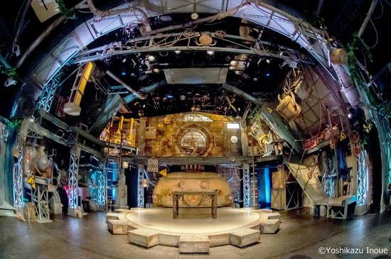 I can’t say that I’ve been to many plays in the past, but when I think theater, I expect Shakespearean plotlines with a protagonist/antagonist combo, the changing of scenery, and large casts. GEAR, performed on the third floor of the Art Complex 1928 in Kyoto, had none of these elements. What I got instead was a novel fusion of a wide array of modern performance elements nestled within a traditional Japanese story arc much unlike what I’ve seen prior. The performance took a very traditional style of theater – nonverbal performance on a single set with a traditional Japanese story arc of impermanence – and brought the art form into modern culture through a use of a futuristic story setting as well as modern dance, music, lighting effects, an elaborate stage, and other entertainment forms not generally seen in theater, to bring classic elements into a production fit for an audience of diverse ages and backgrounds.